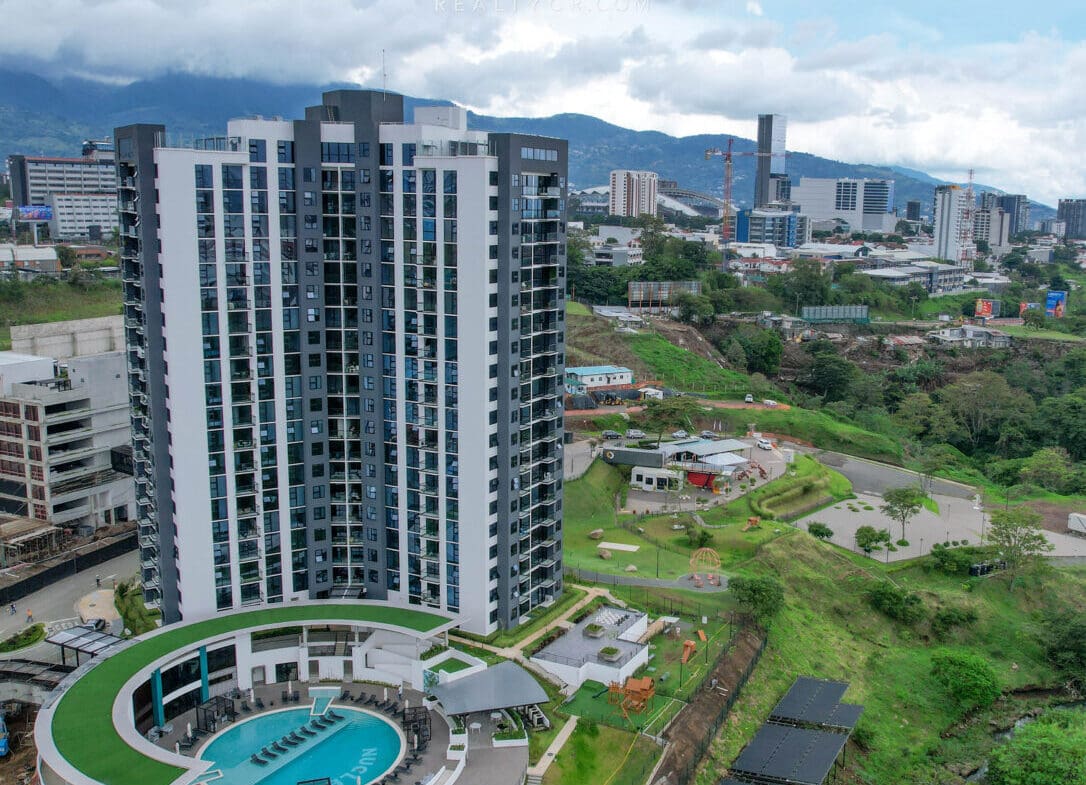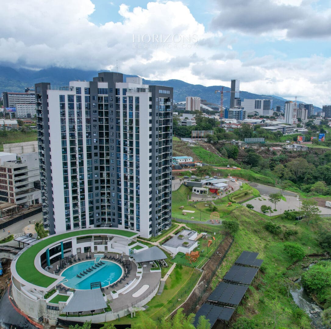 Sala – Cocina con topes en cuarzo – 1 habitación – 1 baño – Balcon con hermosas vistas – Area de lavado – 1 espacio de estacionamiento. cuenta con refrigerador, horno, torre de lavado, microondas.
